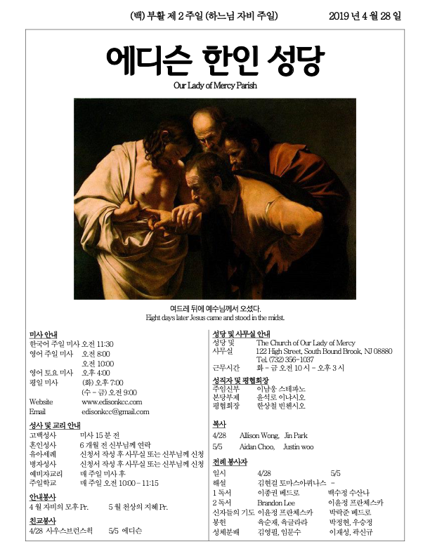 부활 제 2주일 (4/28/2019)