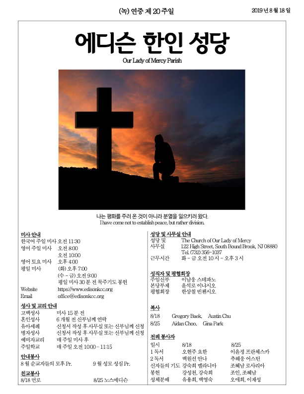연중 제20주일 (8/18/2019)