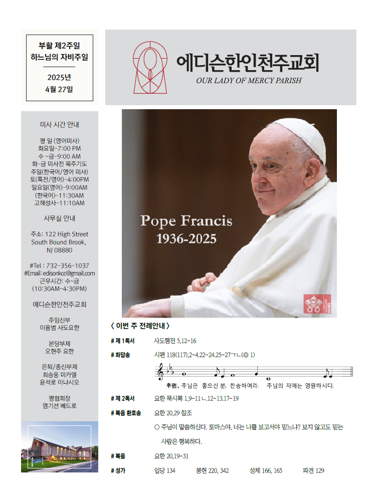부활 제2주일 하느님의 자비주일 (04/27/2025) 주보
