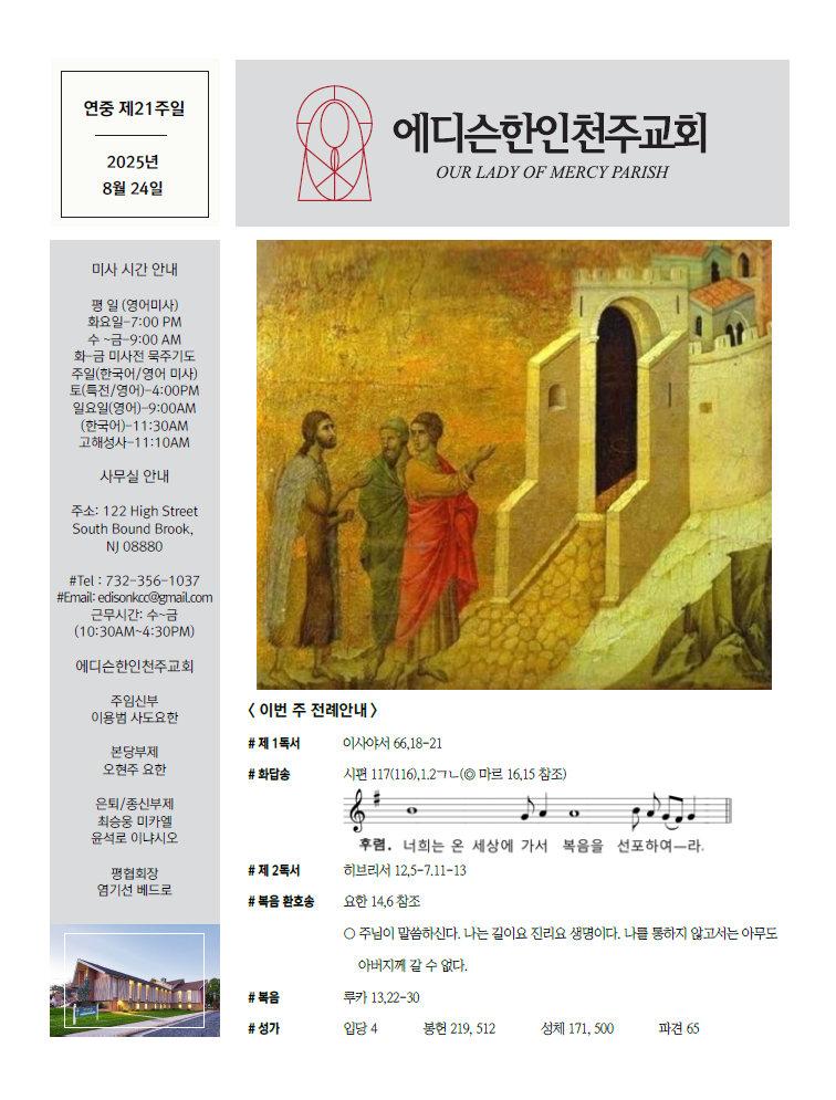 연중 제21주일 (08/24/25) 주보